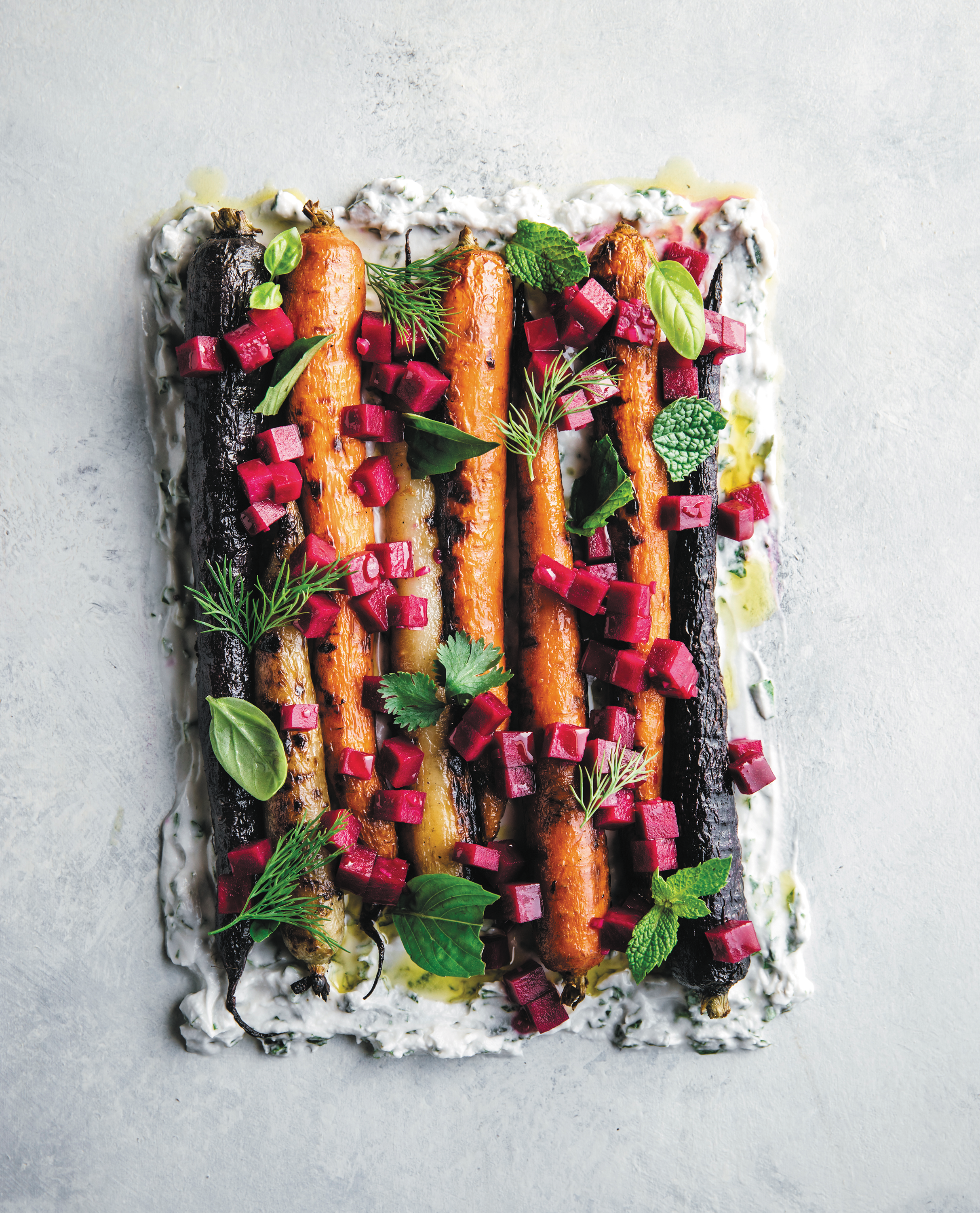 Watermelon and Berry Salad Grilled Carrots with Herby Coconut Yogurt and Spicy Beet Vinaigrette Whole Roasted Jerk Cauliflower Poule Nan Sos Rib Eye Steak with Korean Barbecue-Style Sauce and Banchan Haitian Spiced Pineapple Upside-Down Cake Slow-Cooked Salmon with Ti Malice Sauce Mom’s (Haitian) Meatloaf Korean Barbecue-Style Sauce Green Smoothie